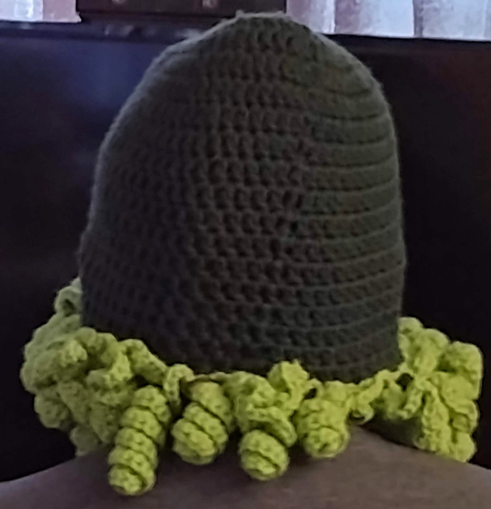 Want to be a fun kind of scary? Drive your neighbors and friends insane? Like going looking for Deep Ones? Show it off by making this tentacle monster hat! Picture is an example of the completed project. This is for the PATTERN ONLY.